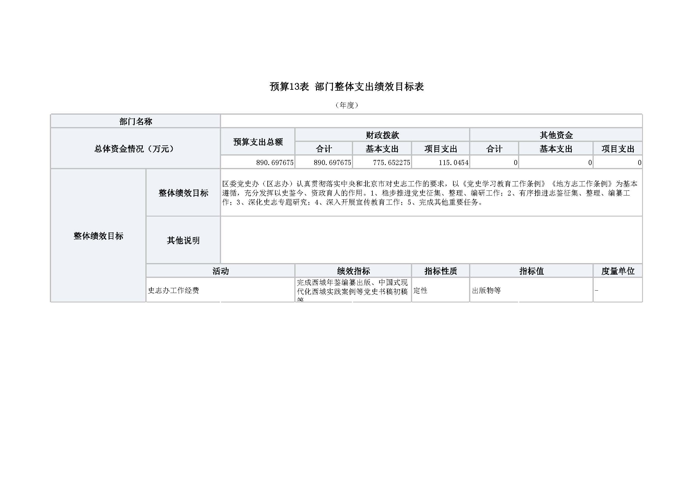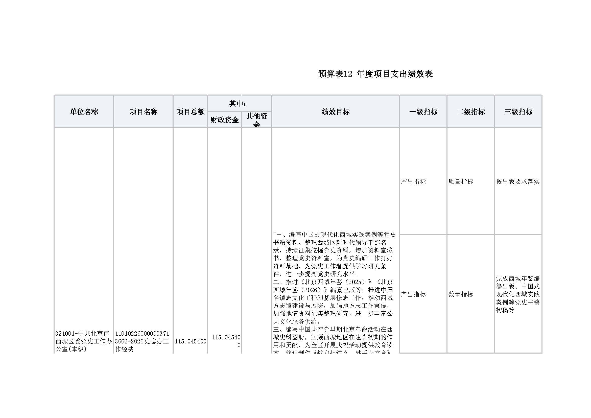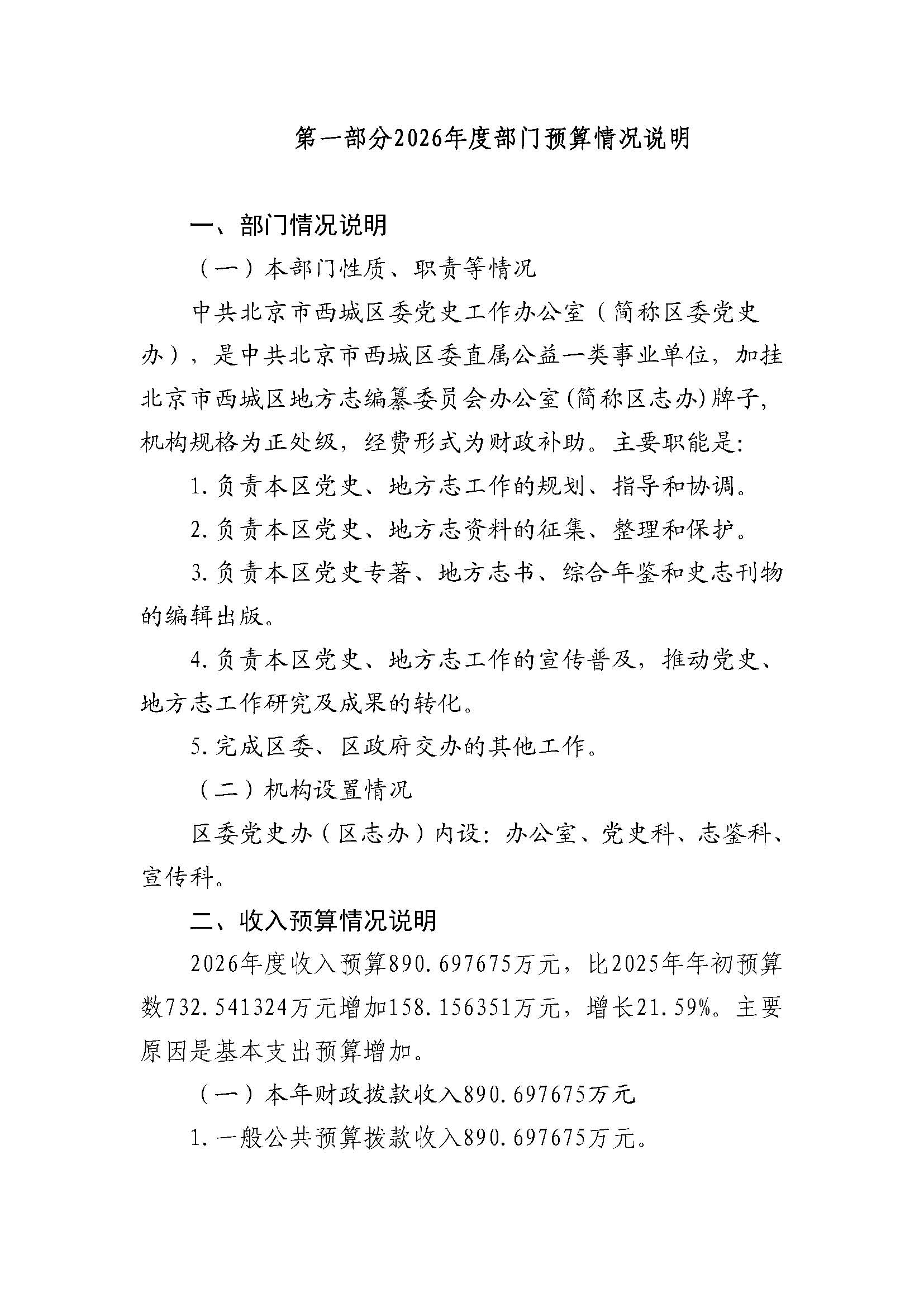 西城区史志办2026年度部门预算信息公开及2026年度部门预算报表